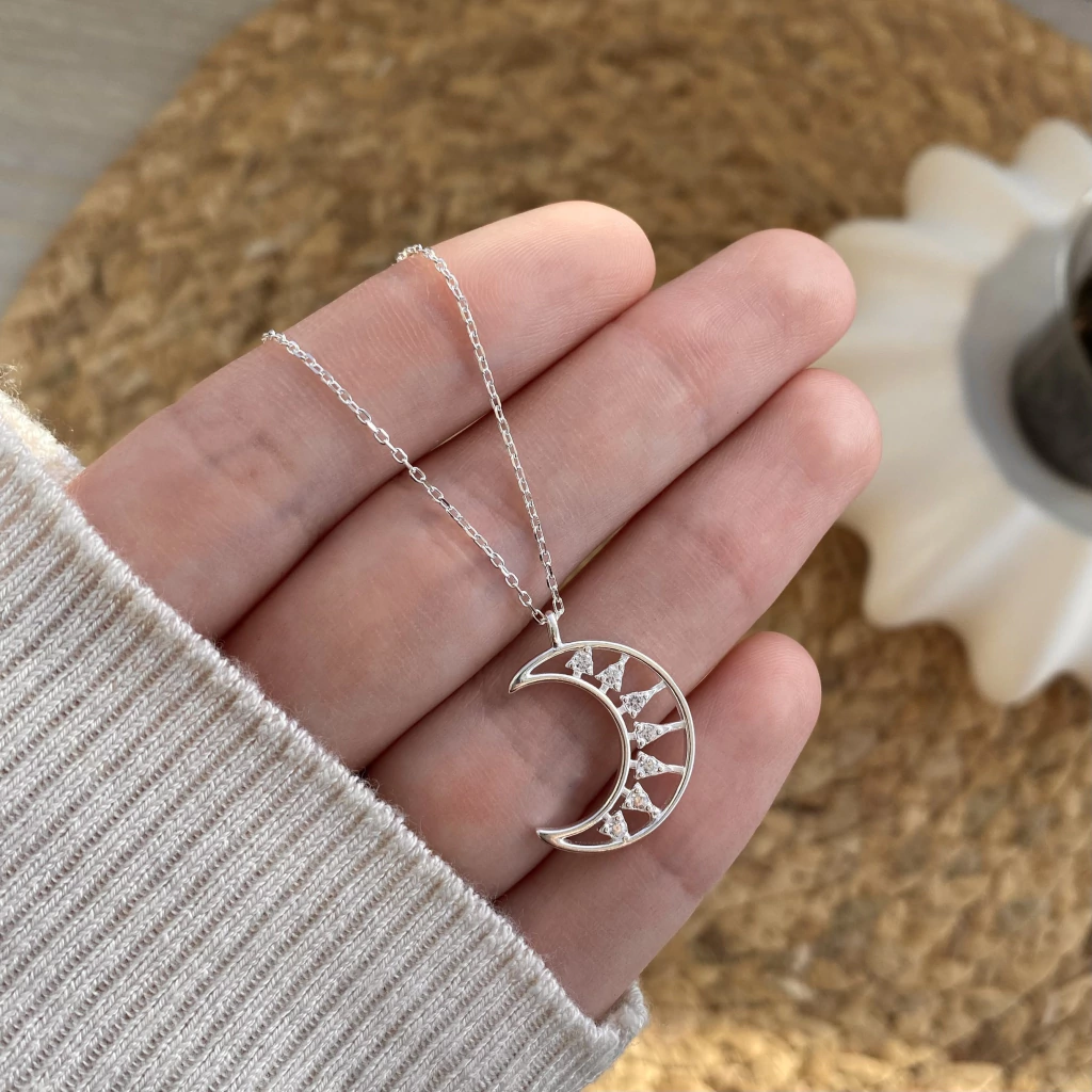 Cadena Forcet con dije en forma de Luna con Cubics. Largo regulable de 40-45cm.